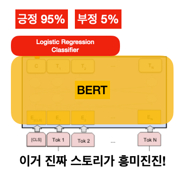 BERT를 써먹는다의 의미:⇒ 많은 데이터를 통해 학습해서 만든 BERT라는 모델에 축약된 지식을 적은 양의 데이터에다가 적용하는 것!