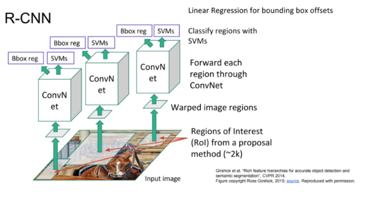 1) 3단계의 구조를 지님 (selective search, CNN, SVM)