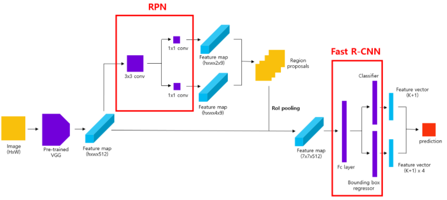 Region Proposal을 GPU를 통해 학습하자! 해서 RPN( Region Proposal Network)가 추가된 친구