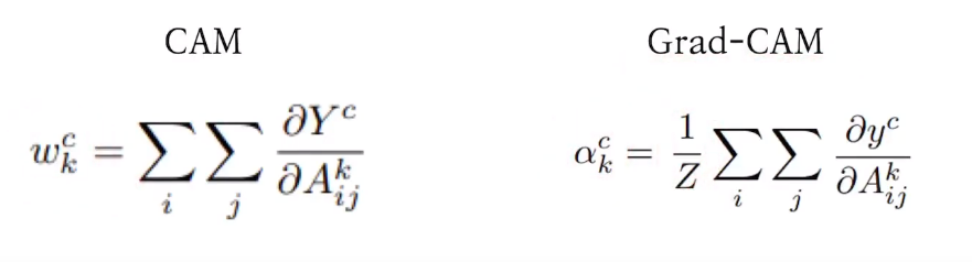 (CAM은 GAP 통해서 weight를 구하는 반면, Grad-CAM은 gradient(역전파)통해서 구함))