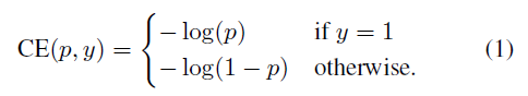 - 따라서 CE(p,y)의 식을 다시 써서, CE(pt) = −log(pt)라고 표기함.