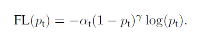 - α는 각 클래스별로 가중치를 지정하는데, 손실 함수에서 적게 등장한 클래스(정답 클래스 - positive) 에 대해서는 가중치를 높게 주어 모델이 이를 더욱 잘 학습할 수 있도록 함.