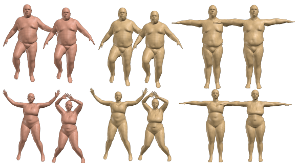 : 다양한 체형을 대표할 수 있는 실제적인 애니메이션 인간 신체를 만들고, 자연스러운 자세에 따라 자연스럽게 변형되며, 실제 인간과 같은 연조직 움직임을 나타낼 수 있는 모델을 만들고자 한다.