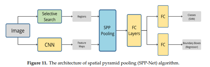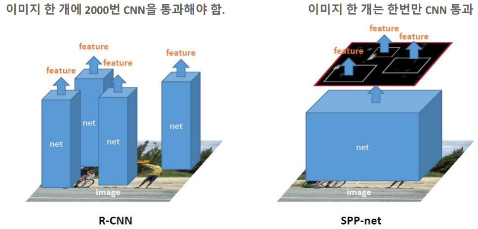 - CNN 계층 반복하다가 마지막 부분에서의 풀링을 SPP pooling으로 바꿔버림