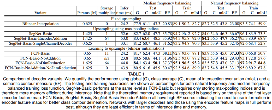 - 인퍼런스 시 메모리 사용량이 제한된 경우, decoder에서 un-maxpooling을 사용하면 성능을 올릴 수 있음