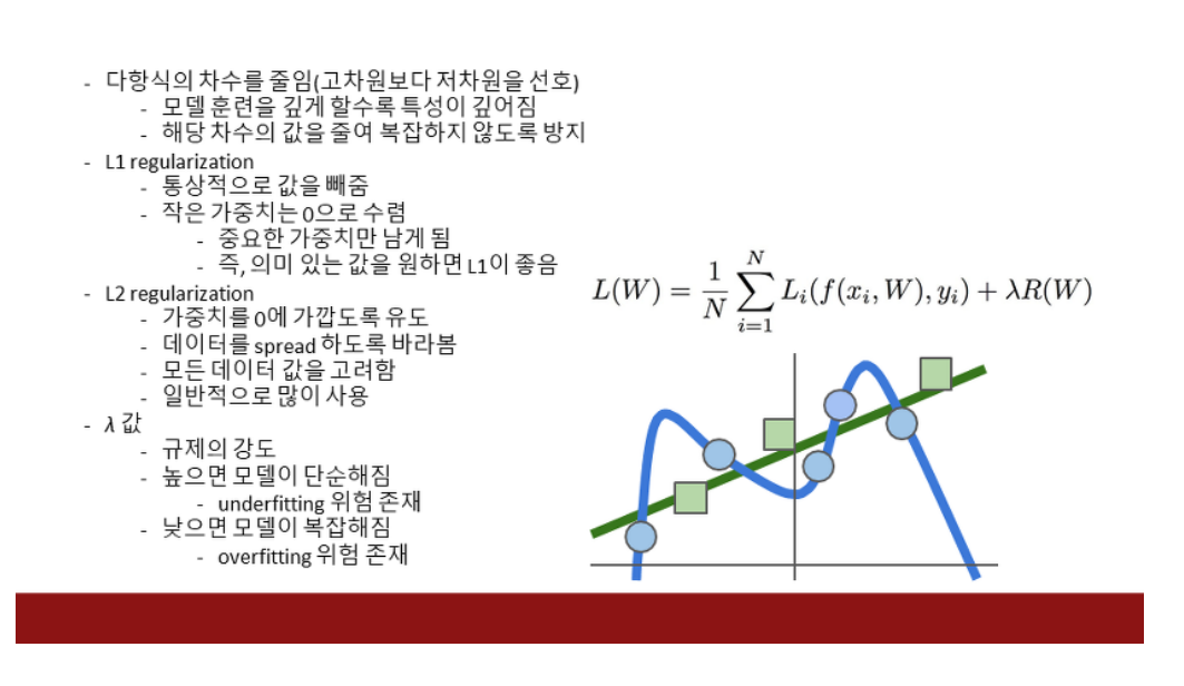 ex) train에게만 맞는 것을 학습시키려고 할 때 이 정도의 패널티는 감안해야돼~ ⇒ 규제화의 기본 뜻.