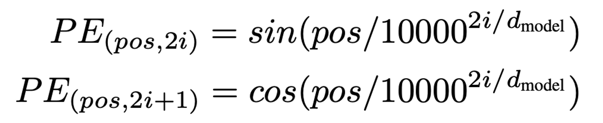 - 같은 위치에 있는 단어는 항상 같은 위치 벡터값을 지녀야 함