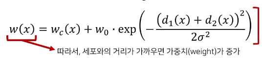 - 세포 사이에 간격이 짧아서 세포별로 구별이 힘든 경우가 있기 때문에, 거리가 가까울수록 가중치를 크게 해서 분리를 확실하게 해버림.