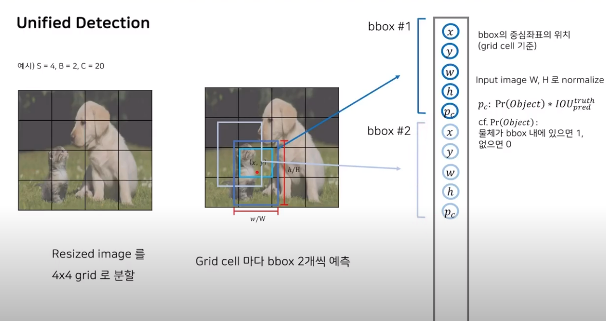 - 4x4 grid로 분할 후, 각 grid cell마다 bbox 2개씩 예측