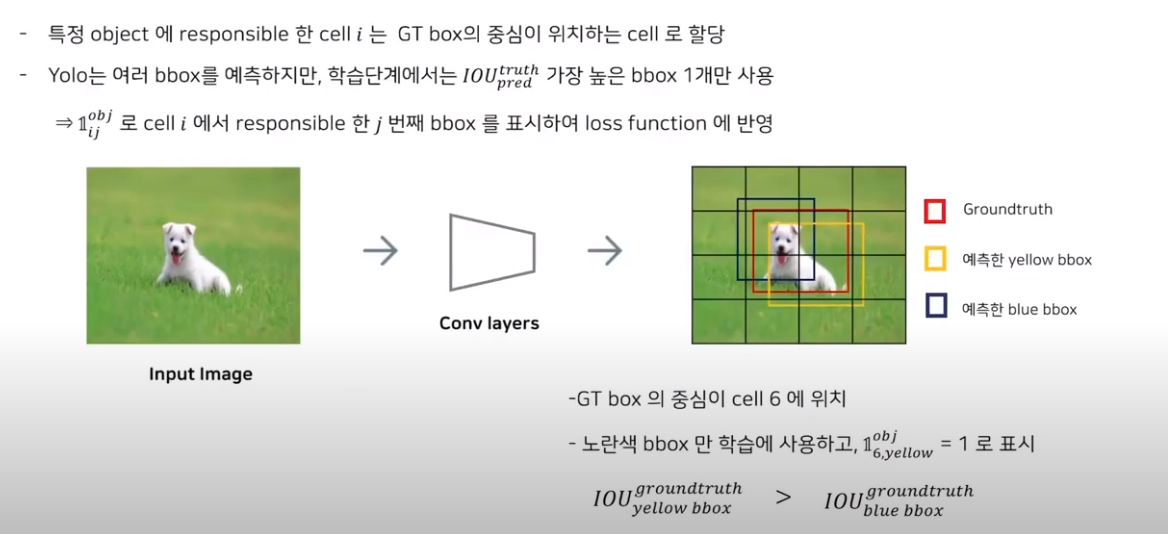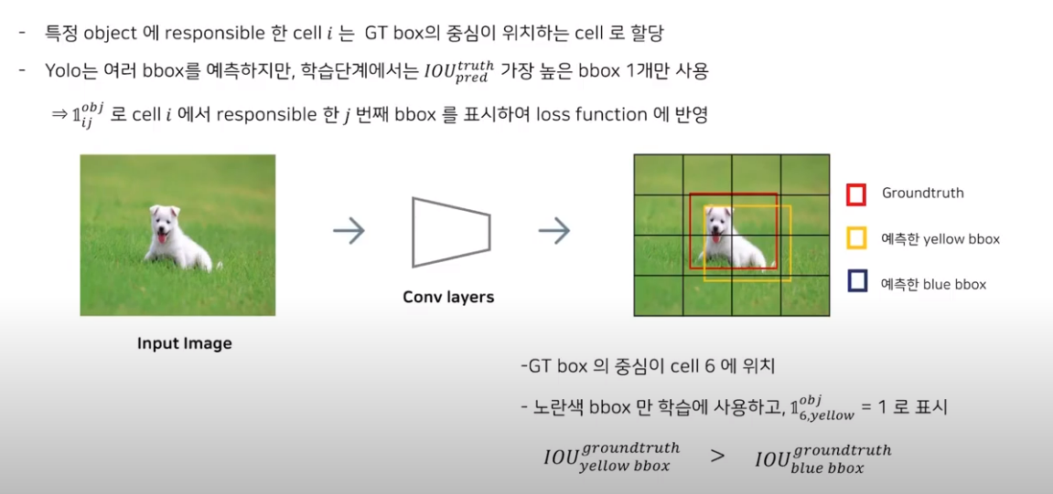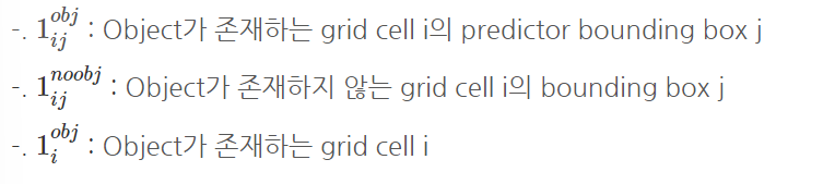 ※ grid cell에 object가 존재하는 경우와 predictor box로 선정된 경우에만 오차를 학습시킴