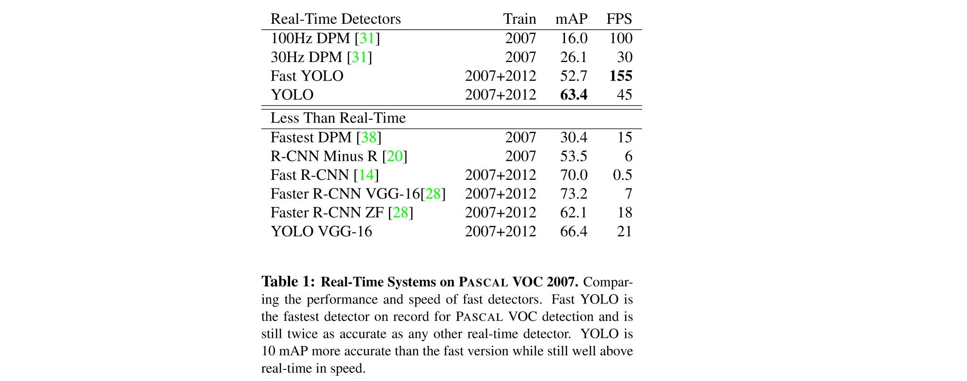 - Fast YOLO의 경우 가장 빠른 속도를 보여줌