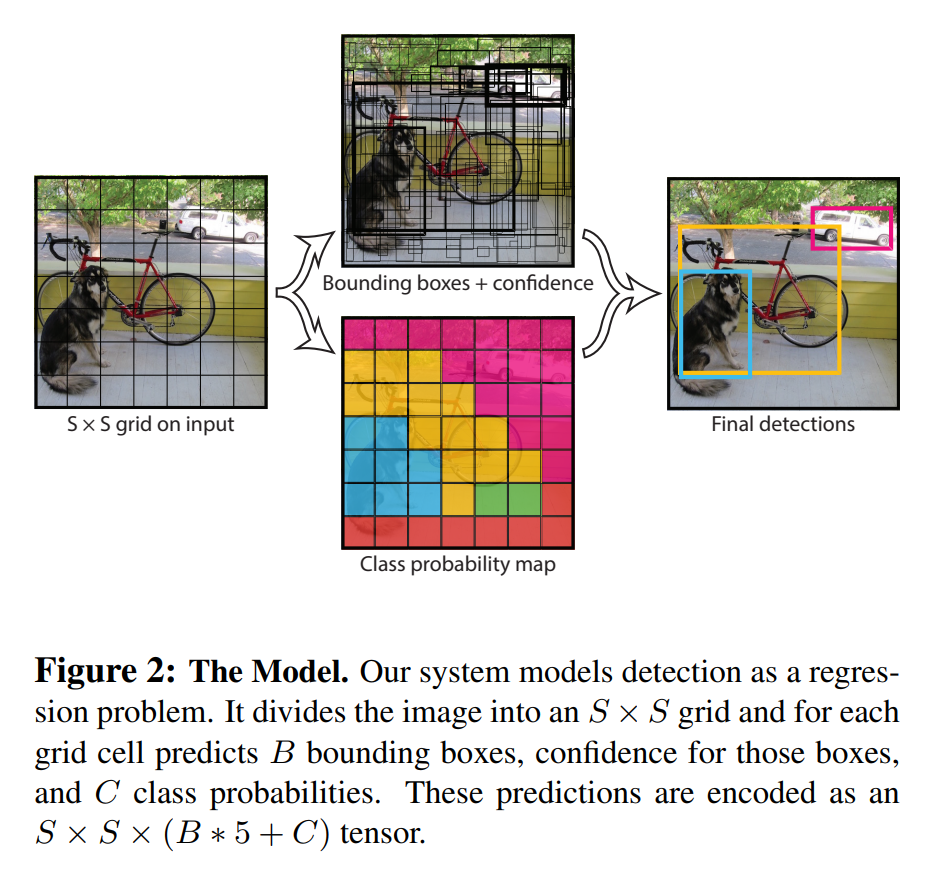 - 이미지로부터 얻은 feature map을 활용해서 bbox 예측 + 모든 클래스에 대한 확률 계산 (병렬적으로 진행 된다고 논문에서 표현)