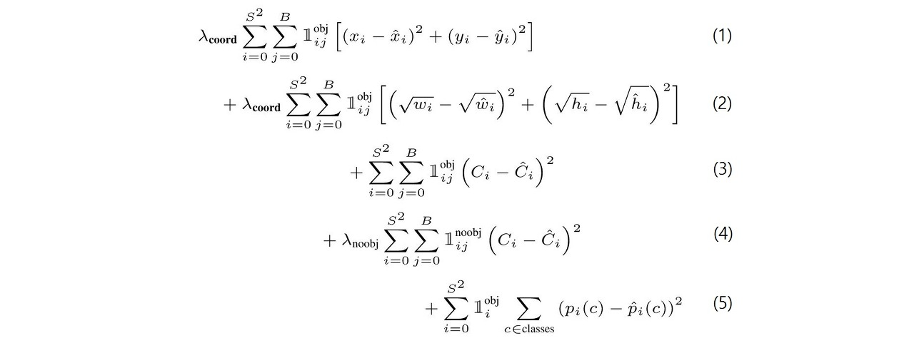 - 이를 개선하기 위해 객체가 존재하는 bounding box 좌표(coordinate)에 대한 loss의 가중치를 증가시키고, 객체가 존재하지 않는 bounding box의 confidence loss에 대한 가중치는 감소시